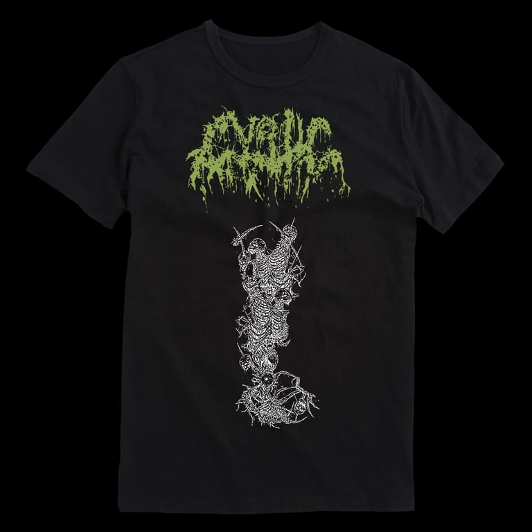 Short sleeve black shirt featuring art by Neroculto and lyrics from the song "Abysmal Tundra" on the back. Printed with discharge ink on Gildan Heavy Cotton tees.